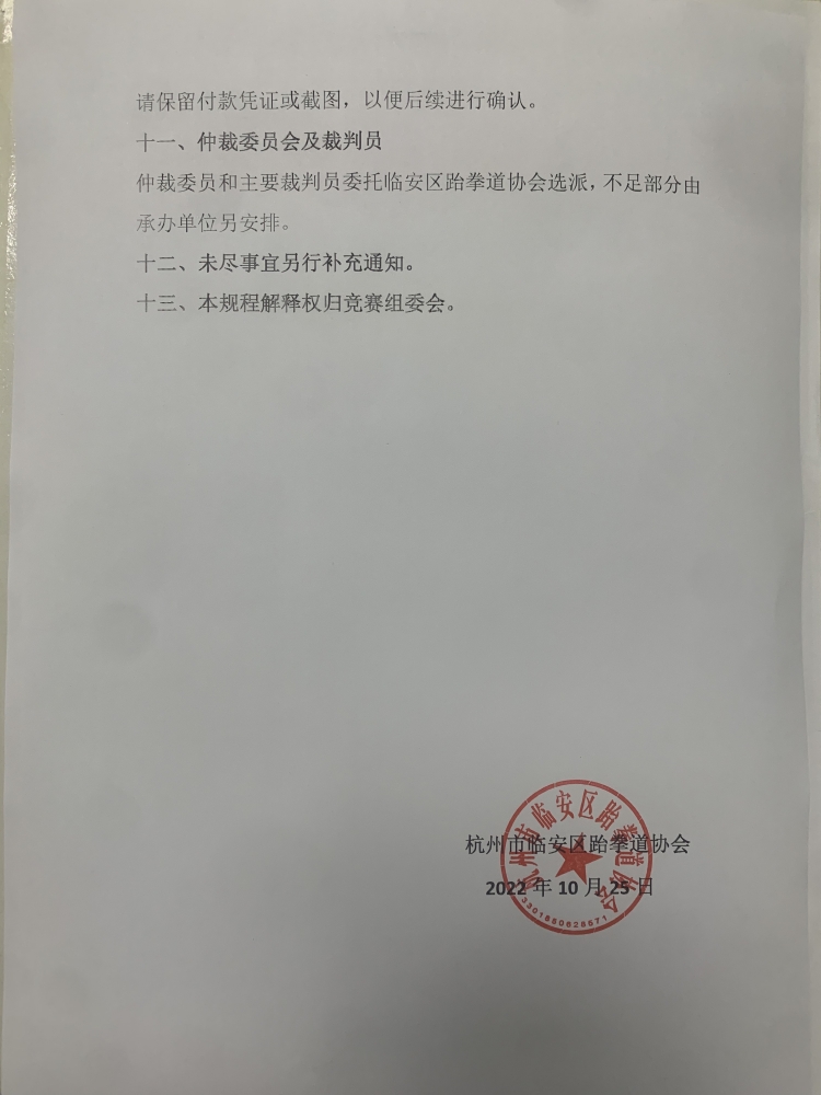 关于举办2022年杭州市临安区第三届中小学生跆拳道比赛资格赛的通知